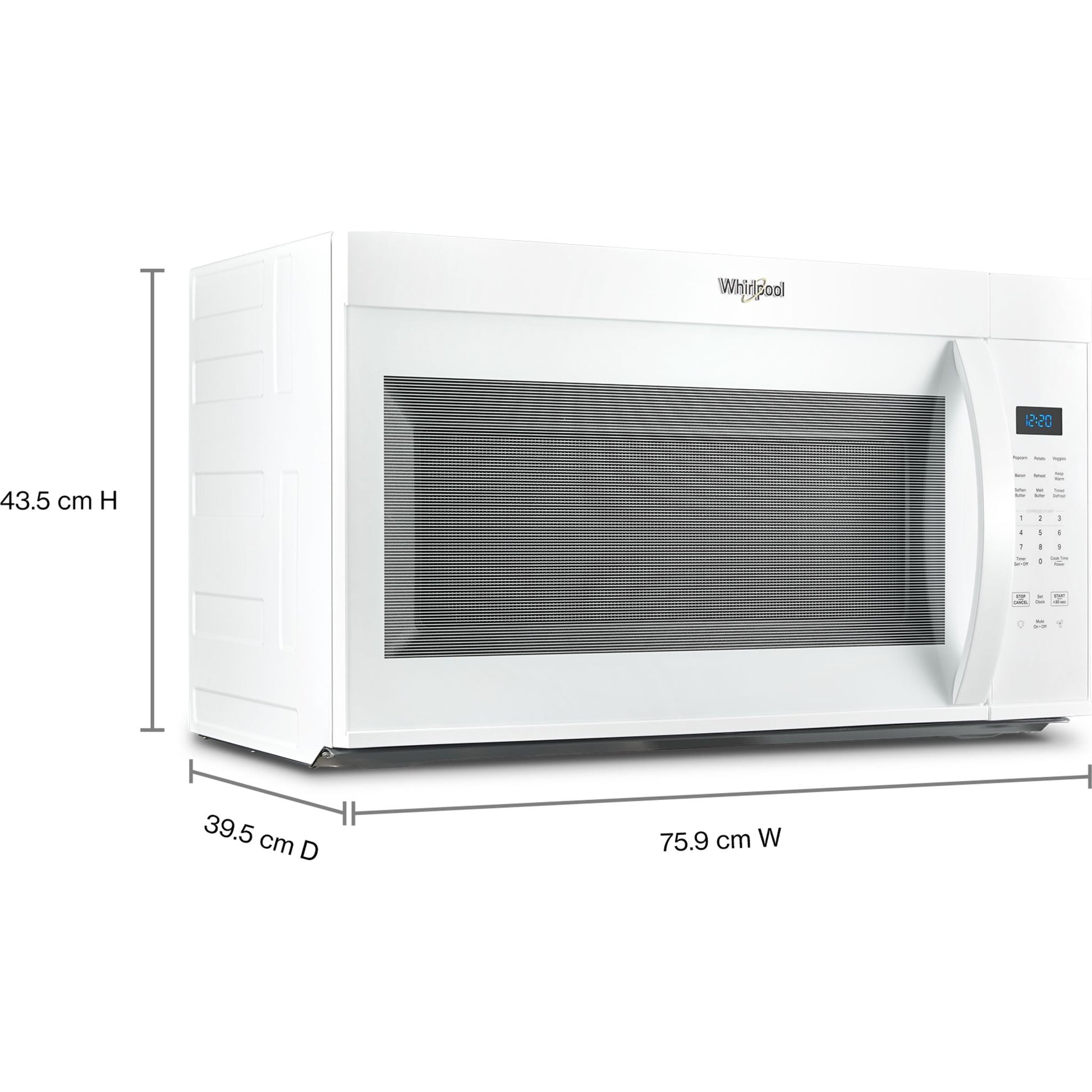 Ce micro-ondes Whirlpool de 76 cm de largeur et de 48 litres, à installer au-dessus de la cuisinière, vous permet d'être prêt à affronter toutes les situations. Les touches de cuisson express vous évitent de saisir le temps de cuisson, tandis que les options préréglées vous offrent un accès direct au temps et à la température souhaités. L'option « Ajouter 30 secondes » permet