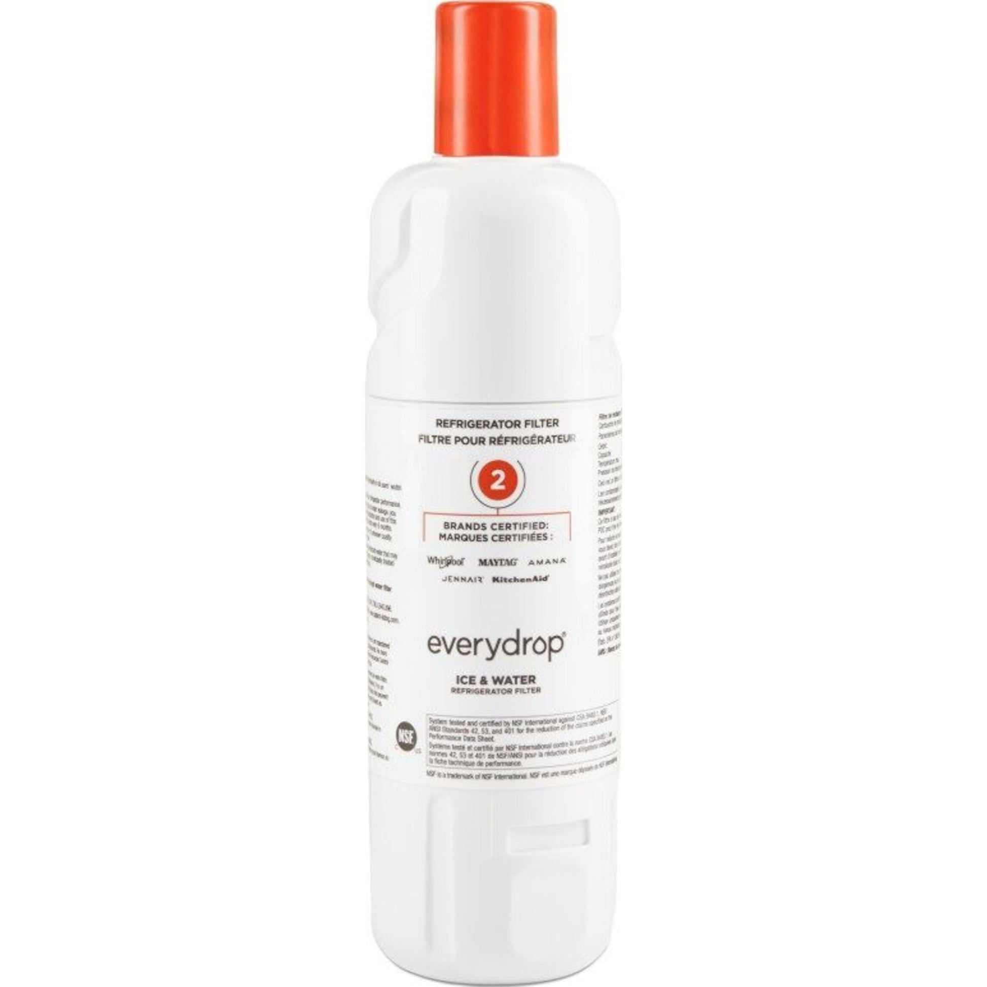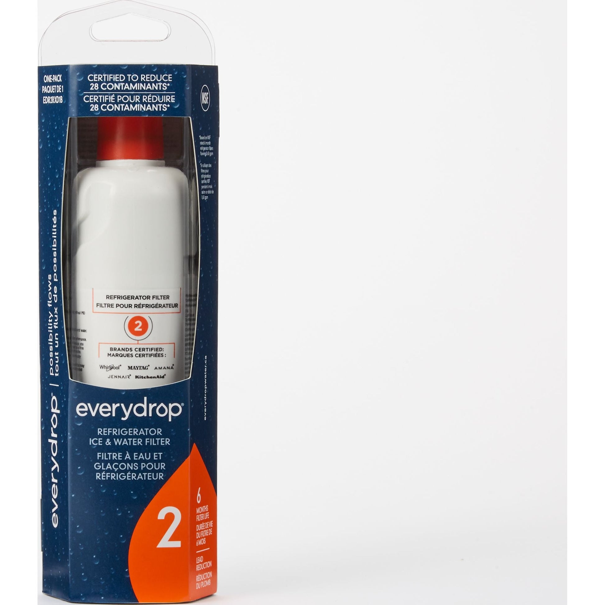 Savourez une eau et des glaçons purs et frais grâce aux filtres à eau Everydrop®. Les filtres Everydrop® utilisent la technologie de triple filtration pour réduire les contaminants. Le filtre n° 2 est certifié NSF et élimine 28 contaminants, dont le plomb, le goût et l’odeur du chlore, les pesticides et les résidus pharmaceutiques. Vous avez ainsi l’assurance de profiter d’une eau de la meilleure qualité pour vous et votre famille. Pour une filtration optimale, remplacez votre filtre Everydrop® tous les 6 mois (ou 757 litres). (Remplace W10413645A)